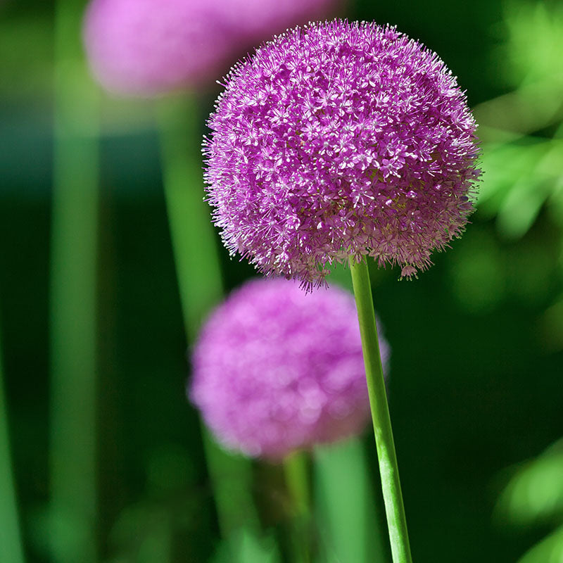 Allium Giganteum gehört zweifellos zur Familie der Riesenzwiebeln. Seine purpurrosa Blüten mit einem Durchmesser von etwa 18 cm wachsen an Stielen, die eine Höhe von 1,5 m erreichen können.