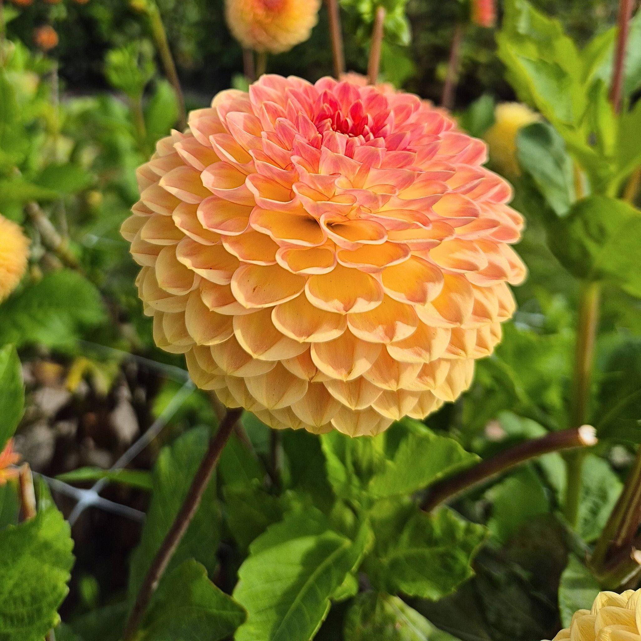 Die Dahlie ‘Blyton Softer Gleam’ ist eine Blume, die deinen Garten immer wieder aufs Neue überrascht. Ihre runden, kugelförmigen Blüten öffnen sich in einem warmen, satten Goldorange und verändern langsam ihre Farbe. Während sich die Blütenblätter immer weiter entfalten, wird der Glanz heller und die Blüte endet in einem sanften Apricot-Farbton. Dieses natürliche Farbenspiel macht jede Blüte einzigartig und verleiht der Pflanze ein sanftes, fast verträumtes Aussehen.
