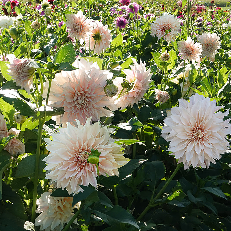 Diese Dahlie ist bekannt für ihre großen Blüten und ihre sanfte, verträumte Farbpalette. Dank ihrer kräftigen Stiele und ihrer langen Blütezeit ist sie eine zuverlässige Pflanze für den Garten und beliebt als Schnittblume. Aufgrund ihrer sanften Farben und ihrer besonderen Blütenform ist sie die beliebteste Dahlie für Hochzeitssträuße.