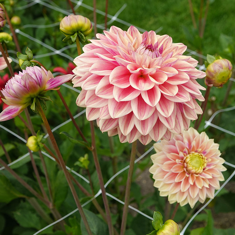 ‘Dusty Beauty’ lässt sich gut mit warmen Rosatönen der Dahlie ‘La Belle Epoque’ oder den frischen Himbeerfarben der Dahlie ‘Jowey Frambo’ kombinieren.