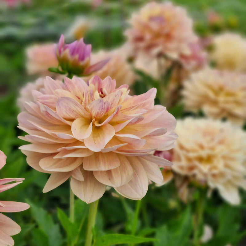 Die Dahlie ‘Joel's Favorite’ lässt sich wunderbar mit den anderen sanften Farbtönen der Dahlie ‘Sweet Nathalie’ kombinieren oder aber mit der verspielten Kaktus-Dahlie ‘Café de Paris’, um einen Kontrast in Form und Farbe zu erzielen.