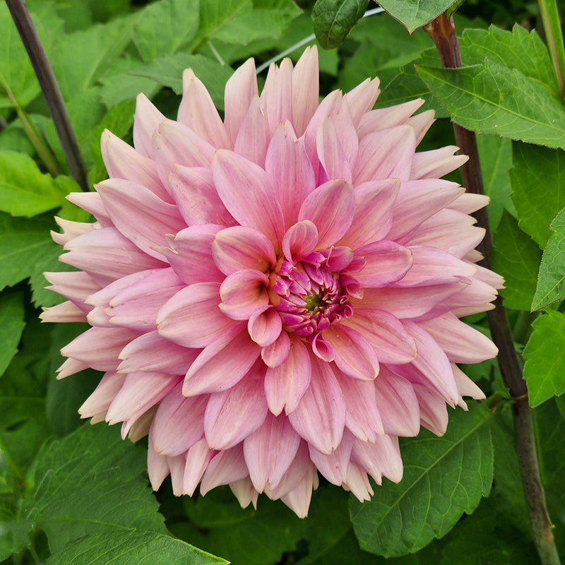 Die Dahlie ‘La Belle Epoque’ blüht vom Sommer bis tief in den Herbst hinein und produziert während dieser Monate mühelos Blüten. Die Pflanzen werden etwa 110 cm hoch und tragen ihre Blüten fest auf langen Stielen. Je öfter du zurückschneidest, desto mehr Knospen bilden sich.