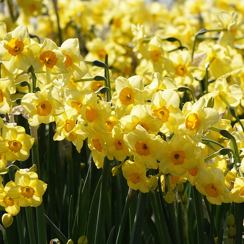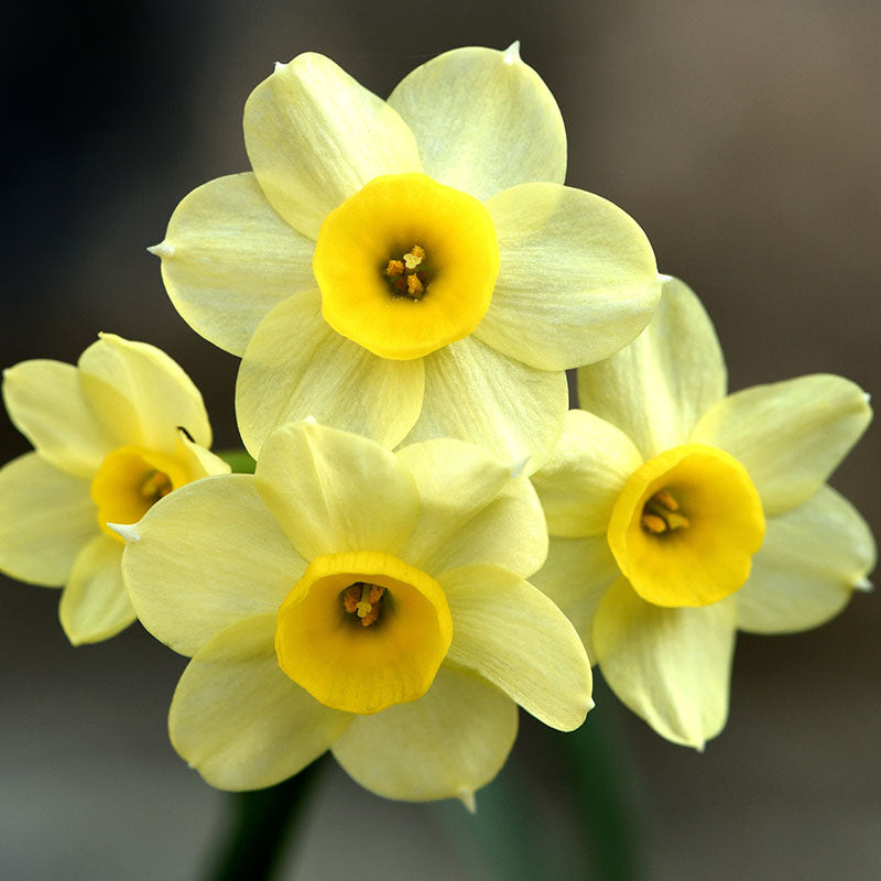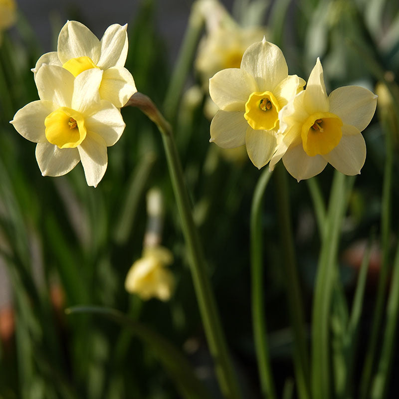Narcissus Minnow ist eine Zwergnarzisse mit der Blühkraft eines wahren Riesen. Hellgelbe, duftende Blüten mit einer leuchtend zitronengelben Trompete. Jeder Blütenstiel trägt etwa fünf Blüten, und die fröhlichen Blüten blühen jährlich in größerer Zahl wieder. Ab 20 Stück: 6,50 € pro Packung