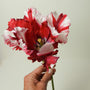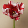 Die Tulpe Estella Rijnveld hat riesige Blüten in leuchtenden Farben. Die großen weißen Blütenblätter sind mit roten Flammenstreifen und vereinzelten grünen Pinselstrichen verziert. Es ist, als wären ein paar federleichte Blumen in Ihrem Garten gelandet. Ab 20 Stück: 8,00 € pro Packung.
