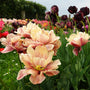 Die Tulpe La Belle Epoque ist eine große, gefüllte Blüte in einer Farbkombination aus Aprikosenrosa und Champagnerbraun. Ihre sanfte, romantische Farbe ist eine echte Bereicherung für jeden Frühlingsgarten.