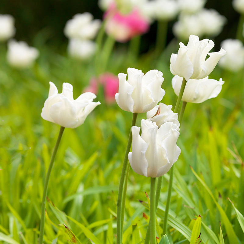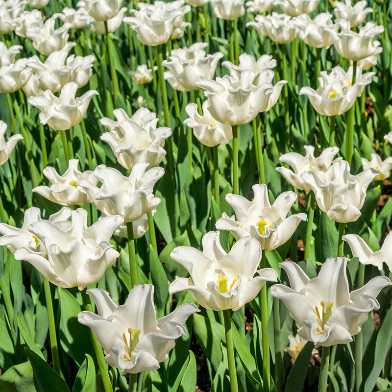 Die weiße Liberstar-Tulpe lässt sich am besten als weiße Wolke beschreiben, die über den Frühlingsgarten tanzt. Ihre sanft geschwungenen, anmutigen, leicht gekräuselten Blütenblätter in strahlendem Weiß verleihen ihr ein einzigartiges Aussehen. Ab 20 Stück: 8,00 € pro Packung.