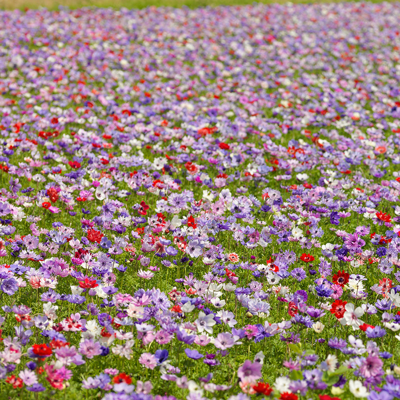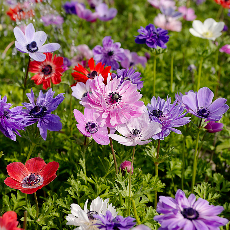 Anemone de Caen leent zich perfect voor het creëren van een kleurrijk bloementapijt. Een combinatie van verschillende sprankelende kleuren die elke jaar de tuin weer zullen versieren.