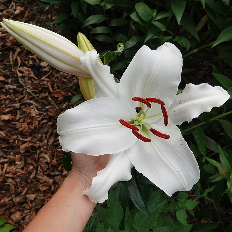 Boomlelies worden vanwege de hoogte ook wel de reuzen van de Lilium familie genoemd. Deze leliesoort heeft een dikke stevige steel die elk jaar iets hoger bloeit. Het eerste jaar zal de bloem ongeveer 1,60m hoog worden en elk jaar steken de bloemen weer een stukje verder boven de tuin uit. Perfect om hoogte en structuur aan te brengen in de tuin, daarnaast hebben ze een intens zoete geur dus iedereen zal de bloei opmerken.