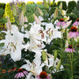 Boomlelie White World geeft grote heldere witte bloemen en een intens zoet geur. Deze hoge lelie steelt gegarandeerd de show met zijn grote bloemen en hoge stelen die een hoogte van 2m kunnen bereiken.