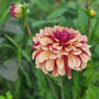 Combineer ‘Crème de Cognac’ met andere dahlia’s in abrikoos- of diep rode tinten voor een harmonieus geheel. Zelf vind ik de combinatie met dahlia Dark Spirit erg mooi.