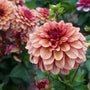 Dahlia ‘Crème de Cognac’ is zo’n bloem waar je steeds opnieuw naar wilt kijken. Haar bloemblaadjes laten een mix zien van butterscotch, koper, perzik en een vleugje kersenrood. Het contrast tussen de amberkleurige bovenzijde en de dieprode achterkant maakt iedere bloem uniek. Het resultaat: een warme gloed die je tuin tot ver in de nazomer laat stralen.