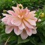 Dahlia ‘Fairway Pilot’ is een dahlia die je niet zomaar over het hoofd ziet. Haar bloemen kunnen tot wel 25 cm groot worden en hebben een zachte zalmroze kleur met subtiele koraaltonen. De bloemvorm is open en vol, ze staan mooi naar boven gericht, zoals een waterlelie. Perfect voor wie van grote bloemen houdt met een zachte, romantische uitstraling.