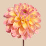 Dahlia ‘Hapet Pastel’ is een bal vormige dahlia met fijne zachte pastelkleurige tinten. Haar bloemen zijn rond en compact, met een diameter van zo’n 12 cm, een worden hooggehouden op stevige lange bloemstelen. Het zachte kleurenpalet van perzikroze en zacht botergeel geven haar een dromerige uitstraling en maakt het een leuke basis om met andere pastelkleurige dahlia’s te combineren.