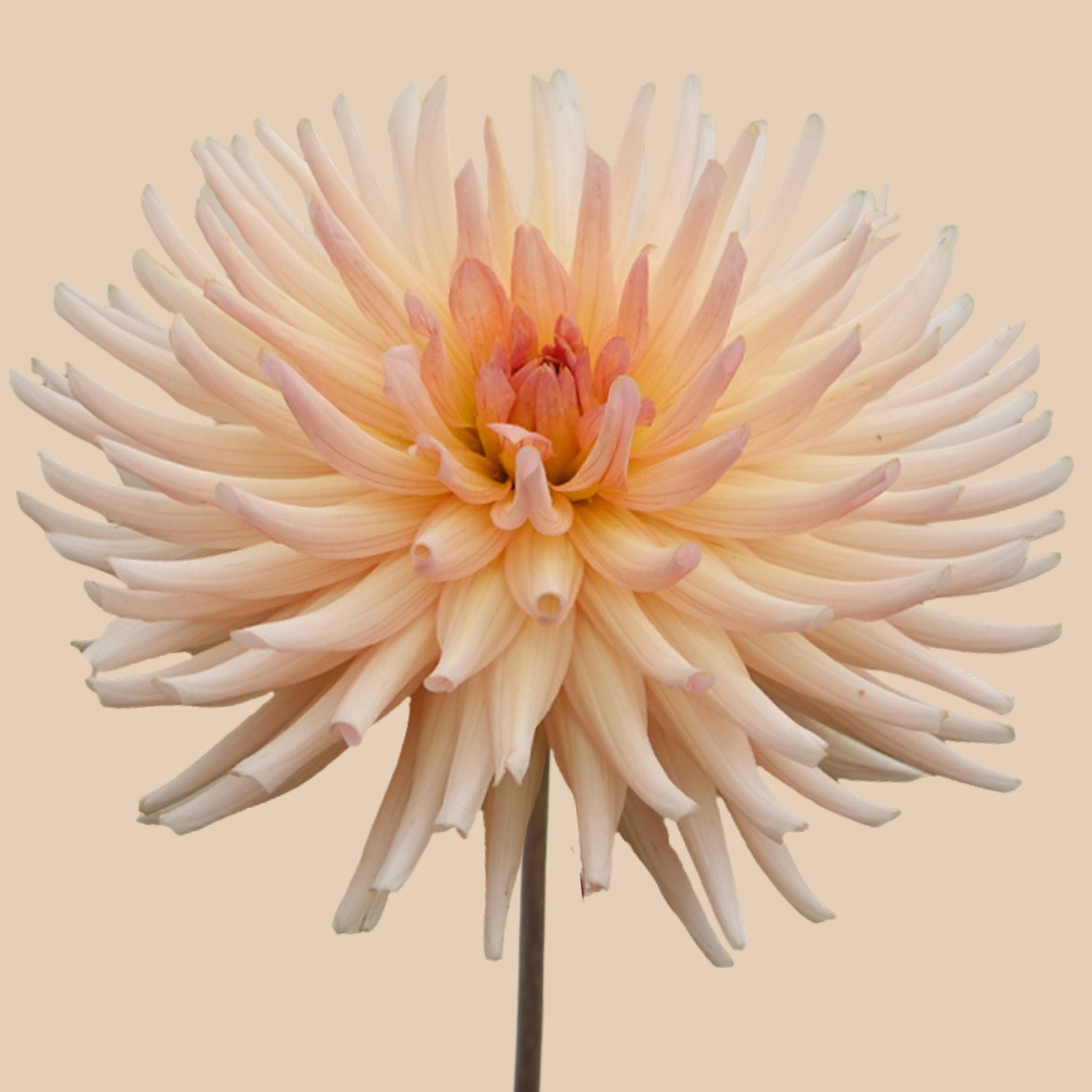Omdat ze zachtheid en speelsheid combineert in één bloem. De cactusvormige bloemblaadjes geven een luchtig en speels effect, terwijl de warme zalm en abrikoos tinten fijn combineren met andere dahlia’s.