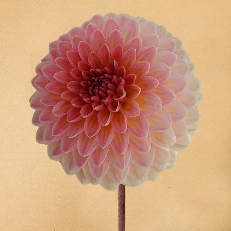 Dahlia ‘Hillcrest Suffusion’– perzikroze met een gouden hart