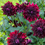 De diep rode bloemen vormen een perfecte basis voor een dahlia combinatie in warm kleurenpalet. De grote bloemen in combinatie met de sterke stelen maken haar een goede snijbloem.