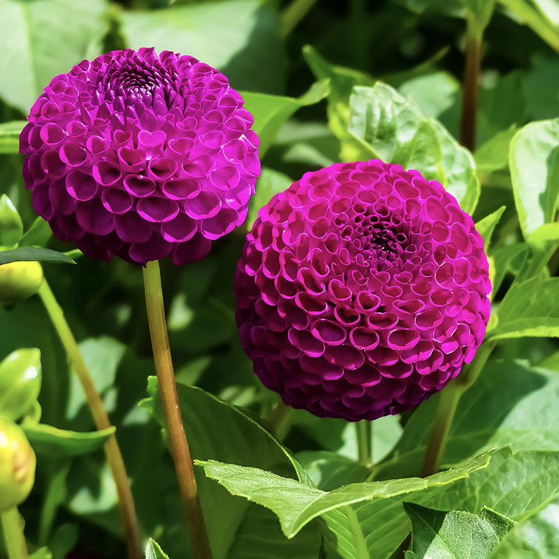 Dahlia ‘Rocco’ heeft kleine maar fijne bloemen met een diameter van 6cm. Haar perfecte ronde pompon bloemen zijn niet groot, maar in combinatie met andere vaak grotere dahliasoorten creëer je een leuk speels effect. De pompons hebben een warme kleurtint van donkerpaars, een vleug framboos met een pruimkleurige gloed.