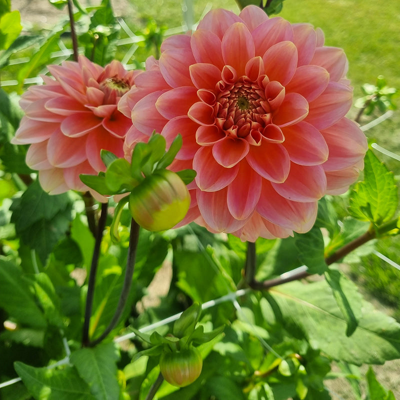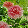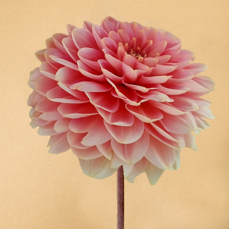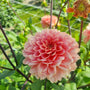 Dahlia ‘Rosario’ is door mij toegevoegd aan het dahlia assortiment vanwege de mooie zachte kleurtinten maar vooral vanwege de bijzondere bloemvorm. De bloemblaadjes zijn licht puntig gevormd en steken mooi naar boven waardoor de bloem iets weg heeft van een mooie gevulde pioenroos. De zachte zalmroze kleur heeft bij het openen een zachte abrikoos gloed. De bloemen hebben een diameter van 12cm en worden hooggehouden op stevige lange stelen.
