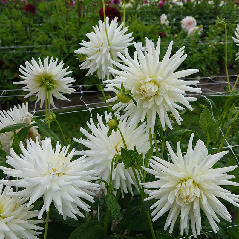 Dahlia ‘Tutu’ heeft heldere witte bloemen in een mooie cactusvorm. Een eenvoudige kleur die juist in combinatie met andere dahliasoorten heel mooi tot recht komt. Het allerleukste aan dahlia’s is alle verschillende vormen en kleuren combineren en deze dahlia vormt daar een perfect canvas voor.