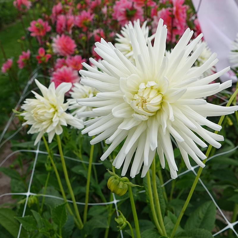 Ik vind haar zelf heel mooi in een wit palet met Dahlia Boom Boom White en Dahlia Honka Fragile. Door de verschillende bloemvormen samen te brengen krijg je een frisse en speelse zomermix.