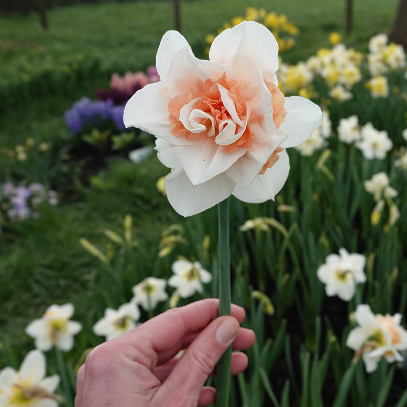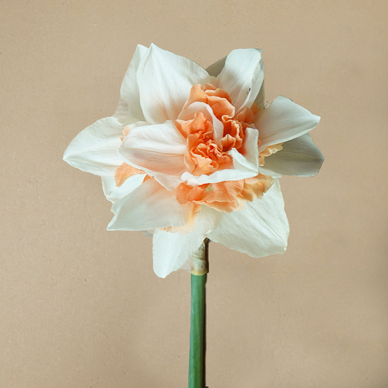 Narcis Replete produceert heldere witte bloemen, met een gevuld hartje in een zachte roze, abrikoos kleur. Een mooie kleurencombinatie die bewijst dat de narcis zoveel meer is dan het stereotype gele bloem die vele kennen. Vanaf 20 stuks: € 6,50 per verpakking