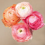 Ranunculus ‘Elegance® Pastello’ Een pastelkleurige mix van groot bloemige Italiaanse Ranonkels. De grote, volle bloemen worden hooggehouden op stevige, hoge bloemstelen en zijn dan ook perfect te gebruiken als snijbloem.