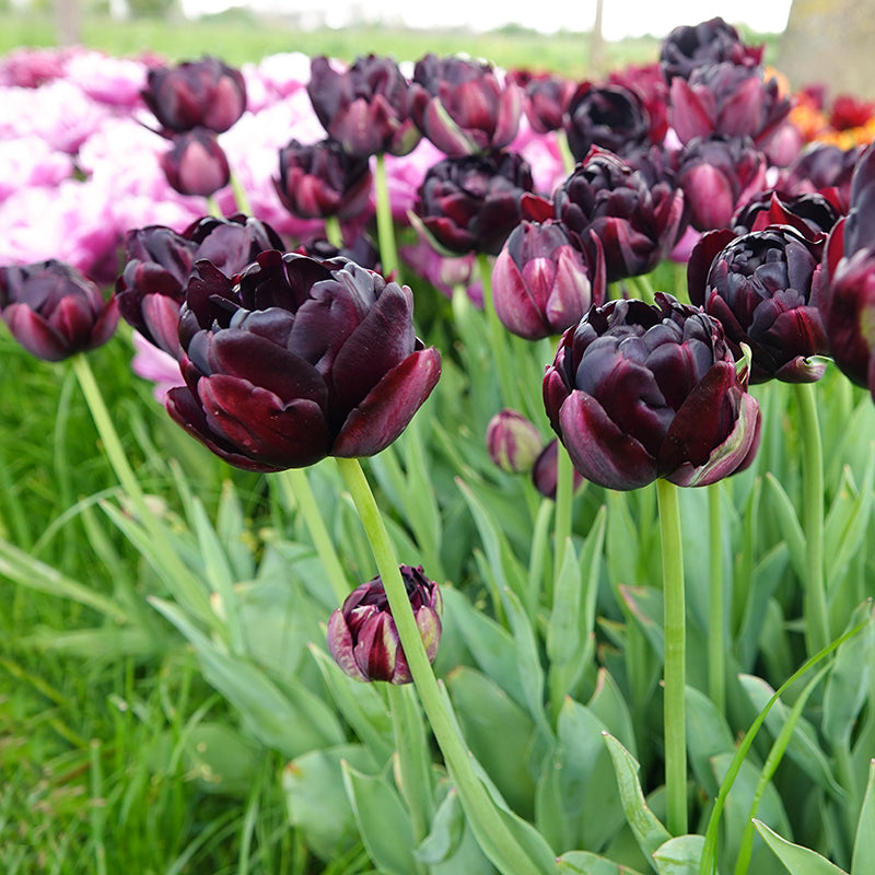 Tulp Black Hero is zeker een zwarte held te noemen. De fluweelzachte dubbele bloemen lijken op een zwarte pioenroos, en draagt met recht de bijnaam van donkerste tulp. De donkere, kastanjebruin-paarse bloemen zijn erg mooi in combinatie met andere kleuren. Vanaf 16 stuks: € 8,00 per verpakking