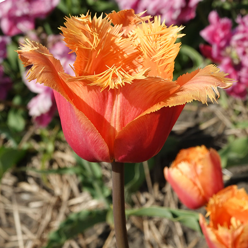 Tulp Lambada is een gefranjerde tulp en laat alle kleuren van een zwoele zonsondergang in haar bloemblaadjes voorbij komen. Een combinatie van een zachte abrikoos roze kleur gecombineerd met koraal rood en een vleugje koper en goud. Een echte eyecatcher! Vanaf 20 stuks: € 8,00 per verpakking