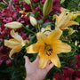 Honeymoon Lilium. Romantic soft yellow petals are arranged in a gigantic flower, held aloft on a sturdy 2-meter-high stem with dozens of flowers. Lilium 'Honeymoon', the name alone speaks volumes; the fragrance sensation is yet to come.