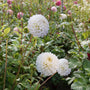 Dahlia 'Boom Boom White' blooms profusely from July until the first frost and continues to produce new flowers all summer long. The perfectly round, spherical flowers display a fresh, vibrant brightness that never gets old. Thanks to its long stems, this dahlia is also perfect as a cut flower.
