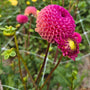 Dahlia 'Burlesca' blooms profusely from summer until the first frost. It produces an endless number of flowers, and the more you prune it, the more it will bloom. The pompoms dance above the leaves on sturdy stems, undisturbed even by a summer breeze. It stays beautiful in a vase for a long time, and its small, compact flowers make it perfect for bouquets.