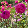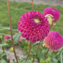 Dahlia 'Burlesca' – perfectly formed pompoms in a warm pink-apricot color