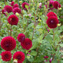 Dahlia 'Cornel' is without a doubt the best red ball dahlia. The flowers are perfectly symmetrical, about 10 centimeters across, and have a dark cherry-red color that resembles rich velvet. The dark green foliage provides a beautiful contrast, making the flowers appear even deeper and warmer.