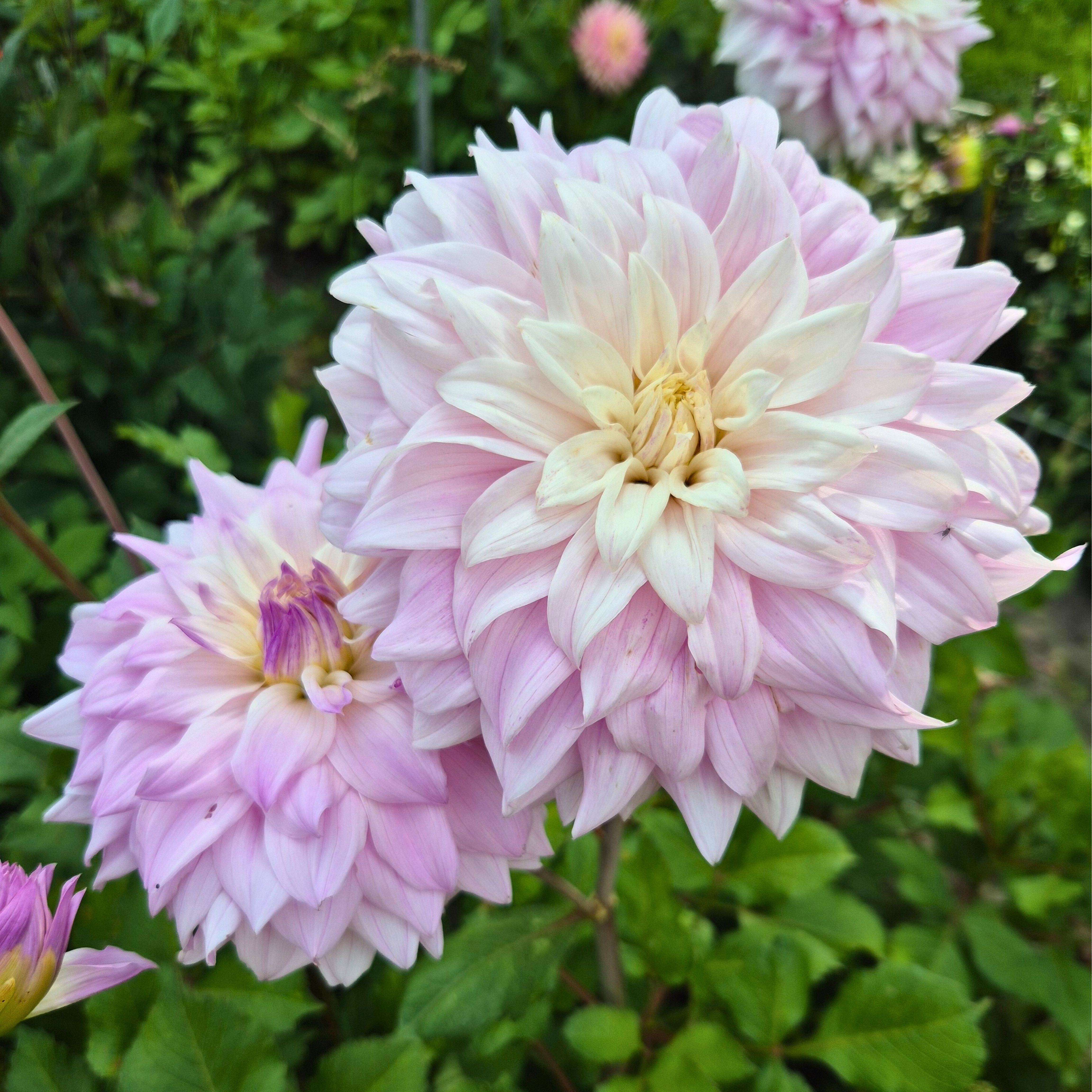 Dahlia 'Ka's Cloud' combines beautifully with other soft pastel colours such as Dahlia Wizard of OZ .