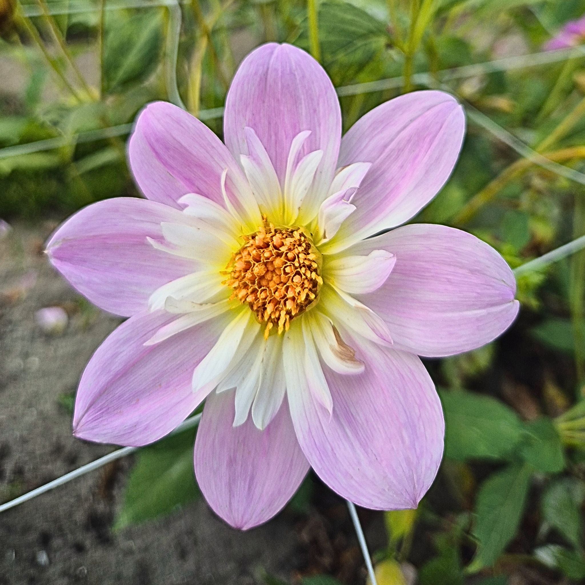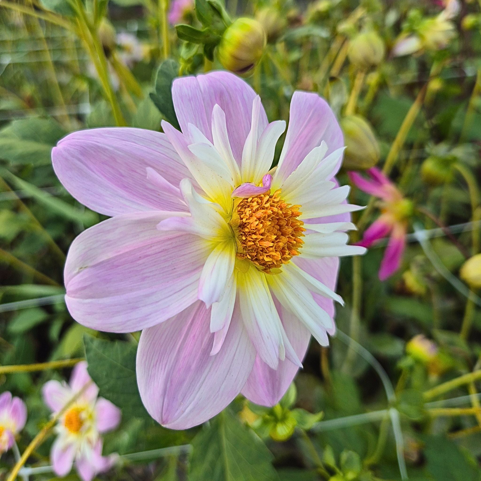 Dahlia 'Teesbrooke Audrey' – pastel pink flower with bees as regular visitors