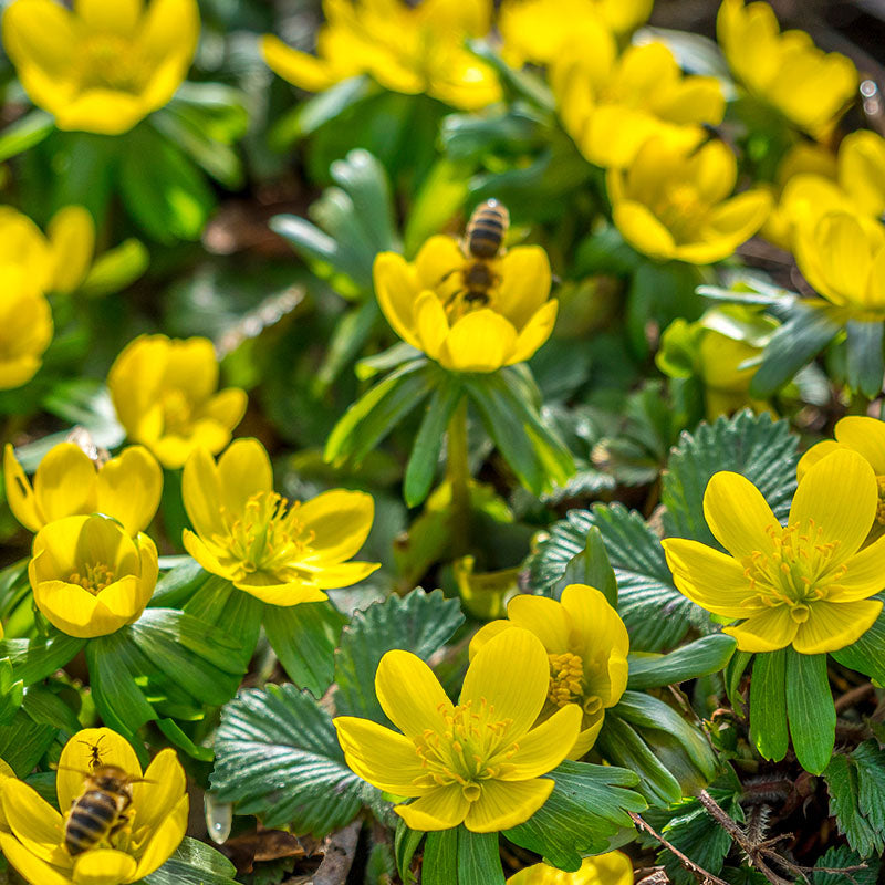 Eranthis Hyemalis, better known as winter aconite, blooms in the midst of winter, transforming forest paths into a golden yellow carpet of flowers. For 40 or more: €6.00 per pack.